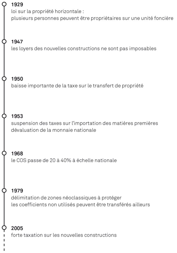 Afin d’encourager le système d’antiparochi, et en l’absence d’une politique du logement ou urbaine spécifique à Athènes, les pouvoirs politiques n’intervenaient qu’au niveau législatif et réglementaire, en promulguant des lois qui encourageaient ce système spontané : augmentation des COS, suppression des taxes sur les loyers et les matières premières, non-imposition des loyers etc.