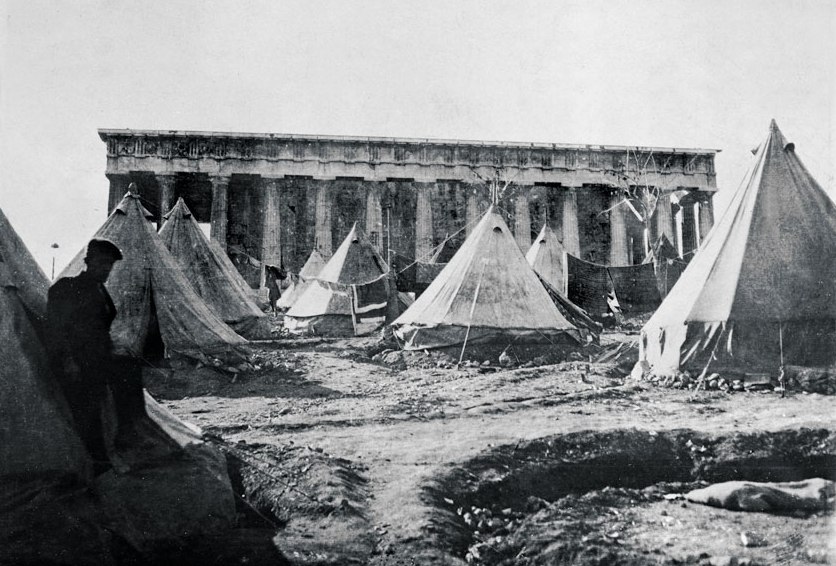 À la fin des années 1920, la petite ville d’Athènes nécessite un développement urbain conséquent et immédiat, pour répondre à l’arrivée massive de près d’un million et demi d’habitants. L’arrivée de réfugiés issus de l’échange de populations avec la Turquie, acté par le Traité de Lausanne en 1923, ainsi qu’un exode rural massif, entraînent une grave crise du logement face auquel l’État grec se retrouve impuissant. Parmi le million et demi de migrants, environ 350 000 personnes arrivent en quelques semaines au port de la ville d’Athènes, qui comptait en 1921 environ 430 000 habitants. Faute de place immédiatement disponible, le moindre espace vide (église, usine, théâtre, caserne) est réquisitionné, jusqu’aux flancs de l’Acropole qui sont rapidement occupés par les nombreuses tentes blanches des réfugiés.