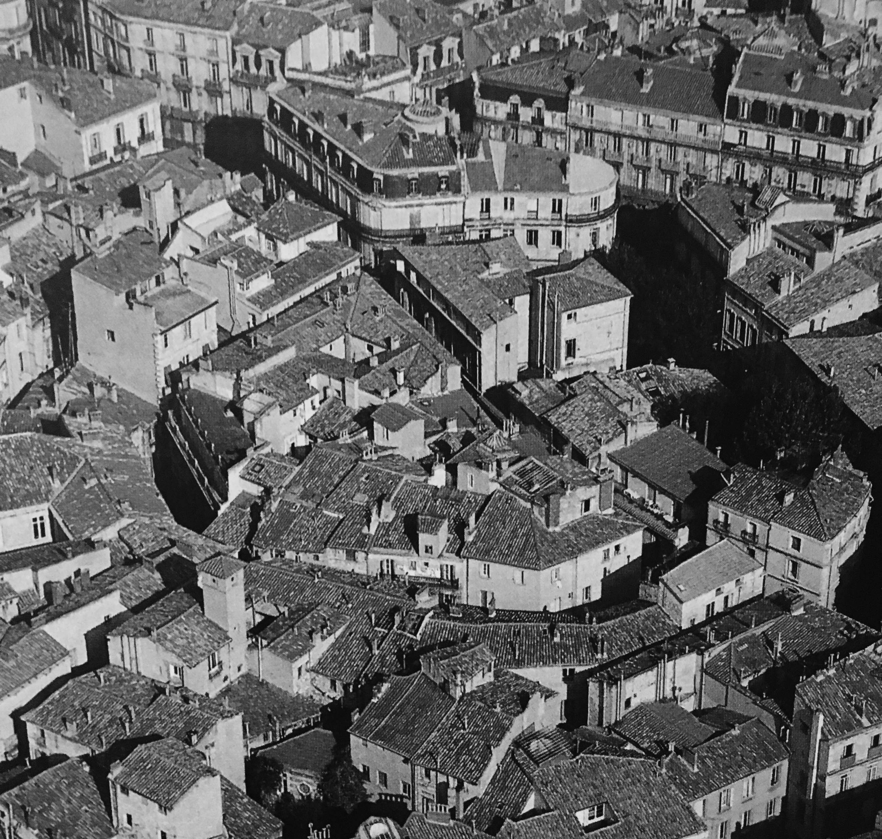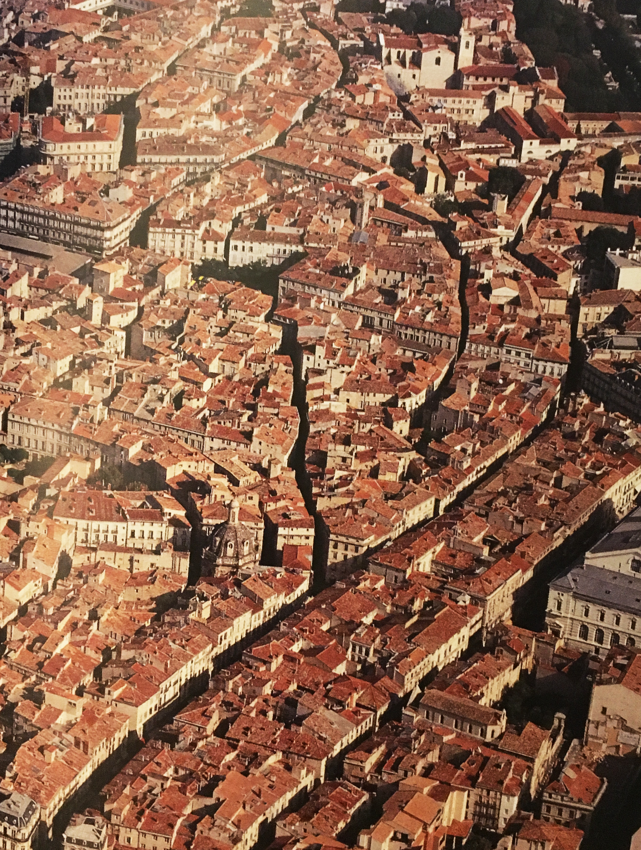 Le récit de l’Ecusson n’est pas exhaustif, d’autres composantes sont les preuves de cet héritage médiéval. Cependant, ces premiers éléments étayent la libre organisation de la création et du processus d’urbanisation de Montpellier, au gré des caractéristiques géographiques du lieu et des intérêts de sa population, du moins jusqu’au XVIIIème siècle. L’arrivée d’une souveraineté étatique marque un tournant dans la figure de la ville. Choisie pour devenir capitale des Etats du Languedoc sous Louis XIII, des aménagements seront édifiées, en dehors et aux abords directs de l’enceinte. La construction de la place du Peyrou et l’édification d’une citadelle dédiée à l’armée ont amorcé une approche plus symbolique et planifiée de la ville. Le XIXème siècle constituera la véritable coupure avec ses grandes percées rectilignes, créées à travers le monolithe urbain, donnant à l’Ecusson montpelliérain son plan actuel.