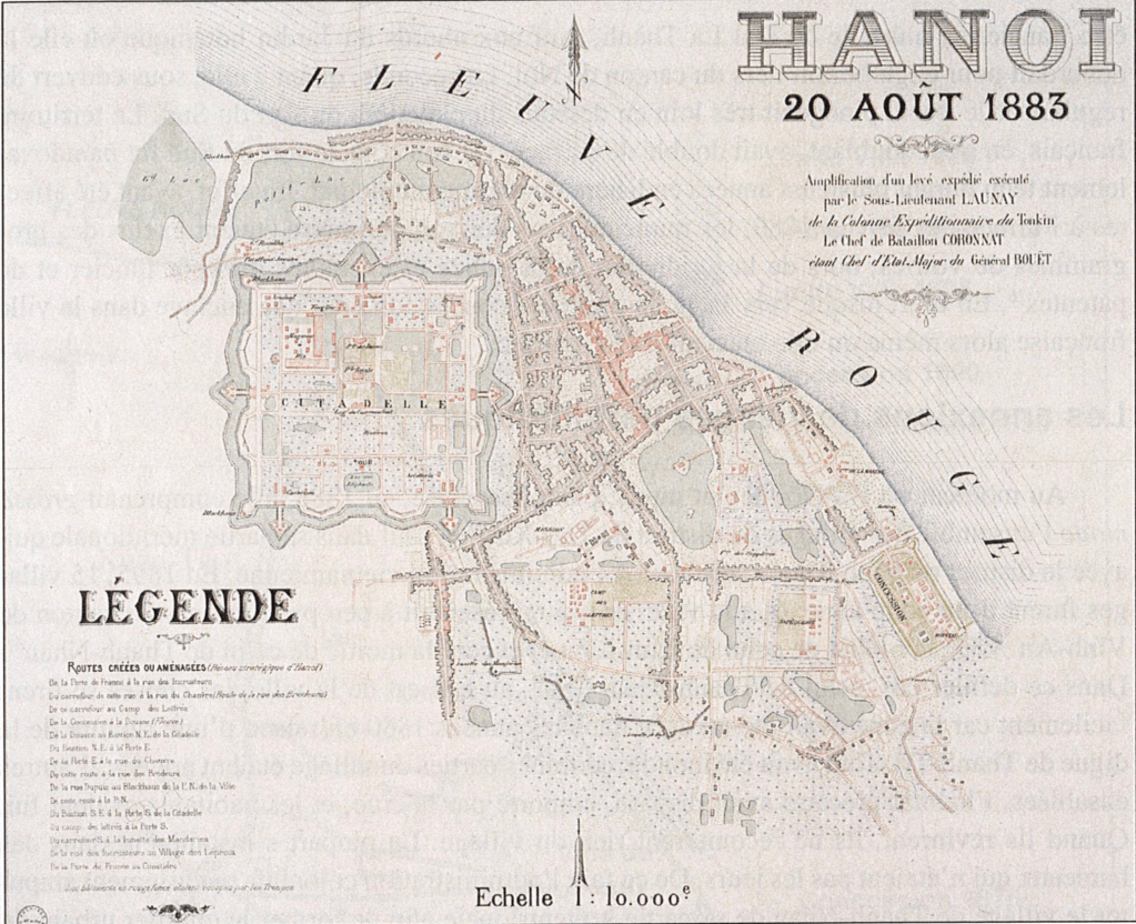 Dès leur arrivée, les autorités coloniales françaises portent sur Hanoi un regard différent de celui que pouvait porter Pham Dinh Bach dix ans plus tôt. Le génie militaire en charge de cartographier la ville, se contente de représenter ce qui est dense et urbanisé. Sur les cartes des années 1880, Hanoi n’est plus assise dans son grand territoire on y oppose une ville symbolique délimitée qui ne tient pas compte des dynamiques qui ont participé à sa fabrication. Cette rupture dans la perception de la ville, se retrouve dans les plans d’extension d’Hanoi. Sa transformation en capitale de l’Indochine française se fera par le comblement des canaux et cours d’eau navigables et par l’absorption et la fusion des phuongs ruraux. La représentation graphique est révélatrice du statut des villages urbains et du rapport ville/campagne que les autorités retiennent.