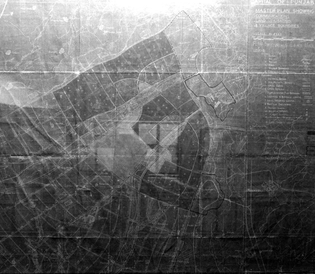 Ce plan de 1952 pense une ville pour 150.000 habitants. Accolée contre le Capitole, symbole de l’unité du Pendjab indien, la ville se développe suivant une orientation Nord-Est / Sud-Ouest. Cette orientation est en effet considérée comme optimale par l’équipe d’architectes par rapport à des questions d’ensoleillement. Puis, on divise la ville en secteurs, suffisamment importants pour fonctionner de manière autonomes, orientés autour d’un grand parc. On pouvait déjà retrouver ces idées dans le plan d’Albert Mayer pour la ville de 1950. En effet, l’américain avait été mandaté quelques temps avant Le Corbusier. Cependant, sa collaboration avec le gouvernement indien cessera avec le décès de son coéquipier dans un crash d’avion. Le Corbusier, soucieux d’être considéré comme l’unique planificateur de la ville, ne reconnaîtra pas ces similitudes. Au contraire, dans une lettre à sa mère, il qualifiera le plan de Mayer de « faux-moderne », « d’erreur » et insistera sur l’idée que ses plans ont été « […] faits, inventés, créés. » (1)