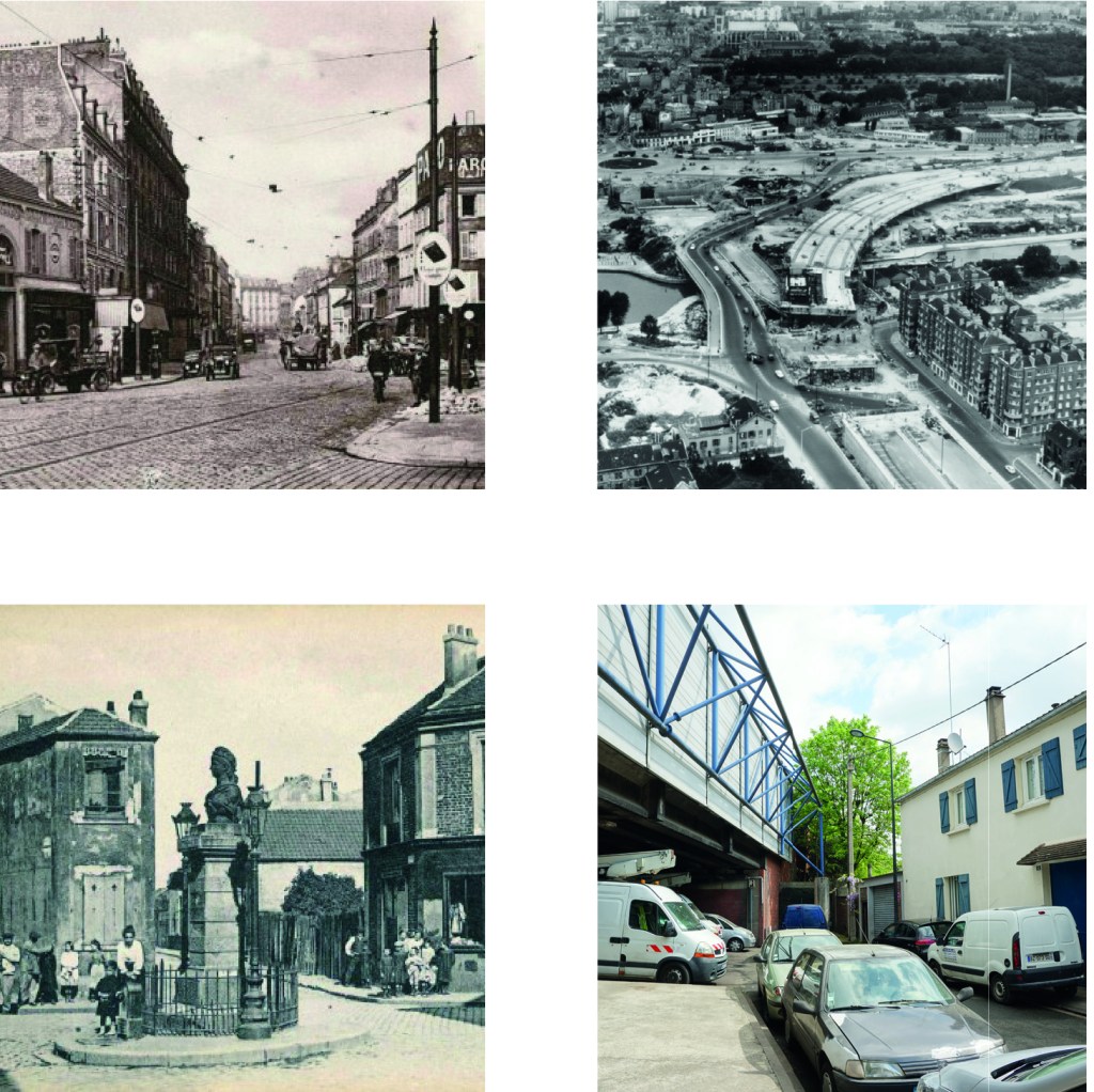 À Saint-Denis, on constate que le chantier de construction des infrastructures autoroutières urbaines a profondément bouleversé la morphologie du territoire. Dictée par le tracé des ingénieurs des Ponts et Chaussées, la fracture autoroutière sectionne Saint-Denis en deux. L’autoroute A1 a par le passé traversé en son cœur le quartier de Bel Air dont il ne reste aujourd’hui qu’un bloc de béton. Le patrimoine militaire du Fort de l’Est s’est vu par ailleurs détruire un de ses bastions. Autrefois, supports d’identités de quartier, lieux de ponctualité et de rassemblement, ces centralités sont désormais des lieux oubliés.