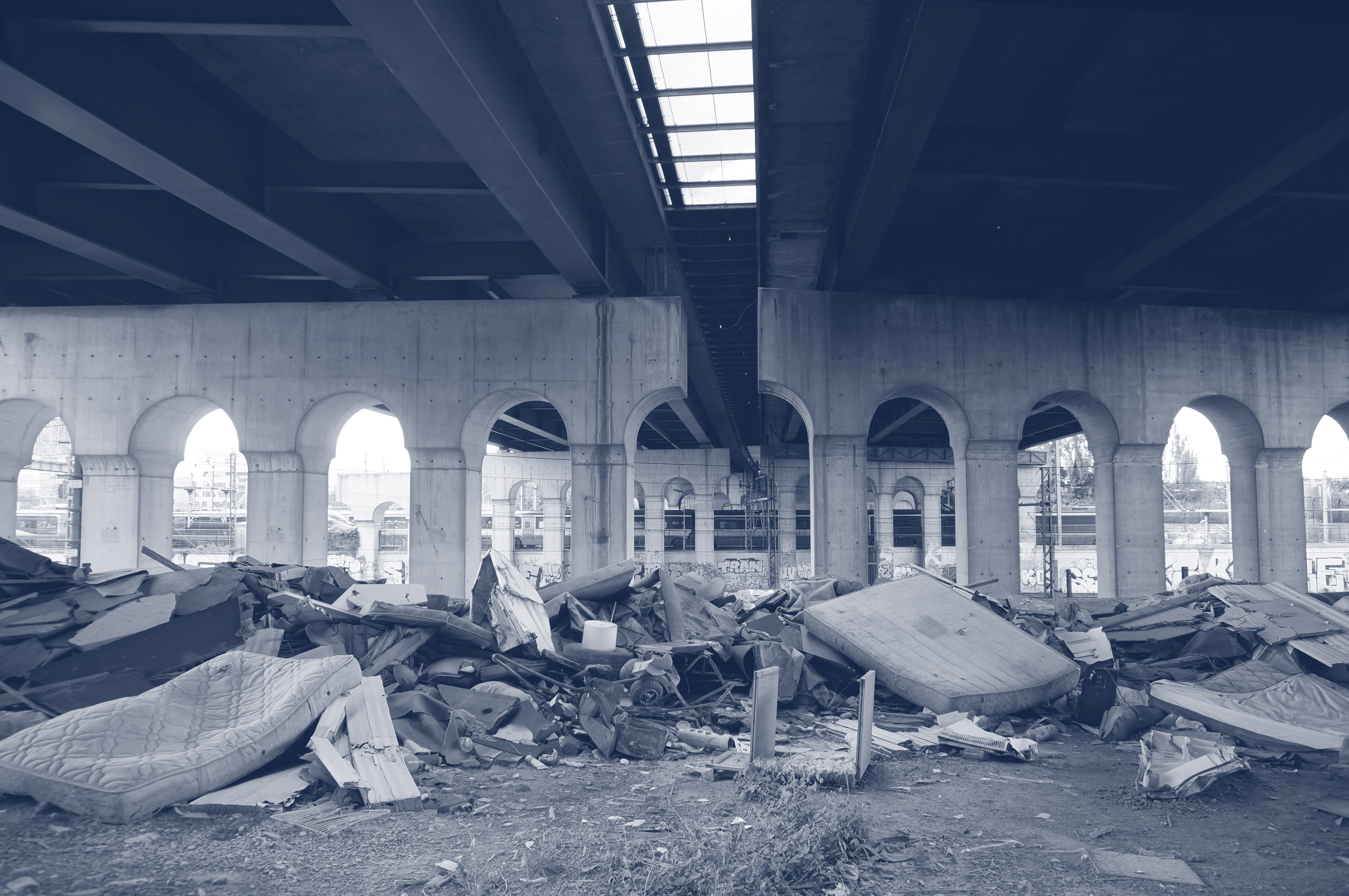 Sous ce recto, la ville s’interrompt. Les trottoirs se resserrent ou disparaissent, laissant la place au dieu-voiture. Dans ces tunnels, le pas s’accélère. Sur ce verso la végétation s’interrompt, recouvert d’une épaisse couche de béton. Ces lieux d’hostilité présentent cependant une forme de beauté : la froideur des dalles grises, la monumentalité des piliers ou le raie de lumière passant entre les voies révèlent une certaine force des lieux. Comment apporter de l’urbanité à ces traits d’union reliant deux morceaux de ville ?