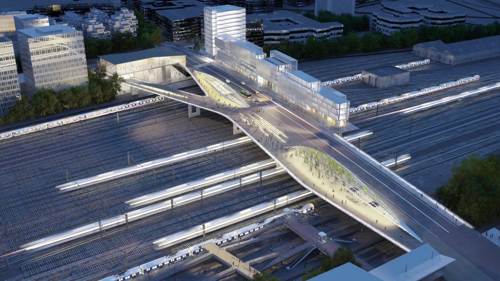 Articulé à la future gare multimodale, un franchissement monumental prendra place. Au cœur de ce projet innovant de franchissement, la Société du grand pari a réuni à la fois des architectes, des directeurs artistiques du Grand Paris Express, des experts dans le champ culturel et artistique, des représentants d’institutions culturelles, ainsi que des chercheurs en sciences sociales, des personnes du monde de l’entreprise, de l’innovation, du champ social, universitaire et académique…